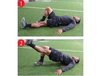 Once you have achieved strong hip control with double leg glute bridge, proceed to single leg.