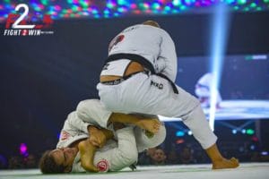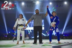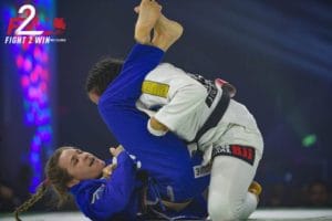 The co-main featured 2018 IBJJF World Champion Alliance representative Karen Antunes matching up against 2017 IBJJF World Champion Check Mat representative Talita Alencar with a F2W Flyweight belt on the line. Two very talented and highly aggressive competitors. Alencar wasted little time, beginning the match with a snap down attempt, chaining it together with a guard pull and a leg attack. But it didn’t take long for Karen to flip the table on Talita’s leg attack to counter with her own to make Talita abandon and defend. As the match eventually made it’s way back to standing, Karen brought it right back down with a crowd-pleasing flying triangle attempt that, at one point, looked that it could’ve been locked in to end the match. But Alencar was able to escape the attempt and eventually pull off a sweet sweep that earned her the top position. With close to four minutes left in the match and Antunes pushing the pace, Alencar sprung an unexpected kneebar attempt of her own that gained Antunes’ attention and shifted her focus to defense. After a back-and-forth in 50/50 guard, both competitors found themselves back on their feet with a little less than two minutes left in the match. But the most tense moment of the match came when Antunes jumped guard, Alencar’s left knee buckled in a very odd angle on the way down. With no visual signs of injury after the match, the match ended with both ladies still attempting attacks. In a very exciting and tough match, it was Check Mat’s Karen Antunes that brought home the F2W Flyweight belt with a unanimous decision.