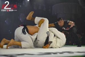 In a match that showcased two champions. F2W heavyweight titleholder and GF Team standout Gutemberg Pereira taking on F2W masters heavyweight champ and Texas native Alexandro Ceconi. The match started out with a brief fight for grips followed by Pereira pulling guard and quickly securing a closed guard. The match was a technical struggle that had Ceconi pressuring Pereira’s closed guard but eventually lending himself to a well set up sweep to give Pereira the top position and eventual pass. After a cat and mouse game with the lapels from the mount Pereira was able to slap on a slick triangle from the mount to keep it secured and roll onto his back securing the finish.