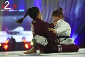 Fight2Win’s fearless leader, Seth Daniels, changed took off his promoter/event director hats to dawn his competition gi and match up against Kuhio Tabancura. In a short, but very exciting match that nearly saw Daniels give up his back, only to eventually initiate and counter his own leg trip to secure the takedown and immediately attack with a wrist lock from a very tight top half that would open up the opportunity for Daniels to secure a Kimura submission and celebrate with a two-birdie kiss to the winds. All without losing or swallowing, what seemed to be gum in his mouth the entire match.