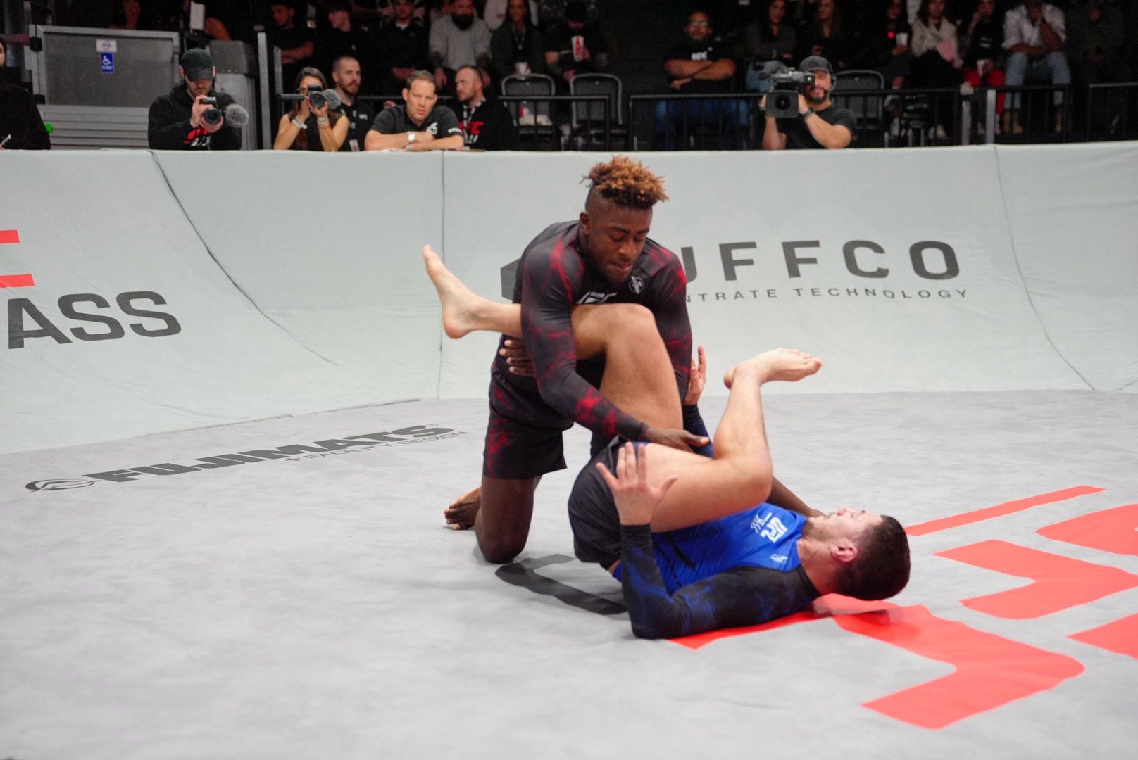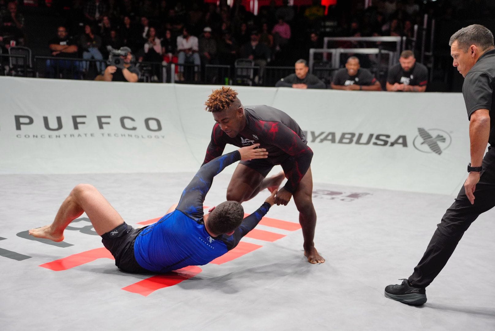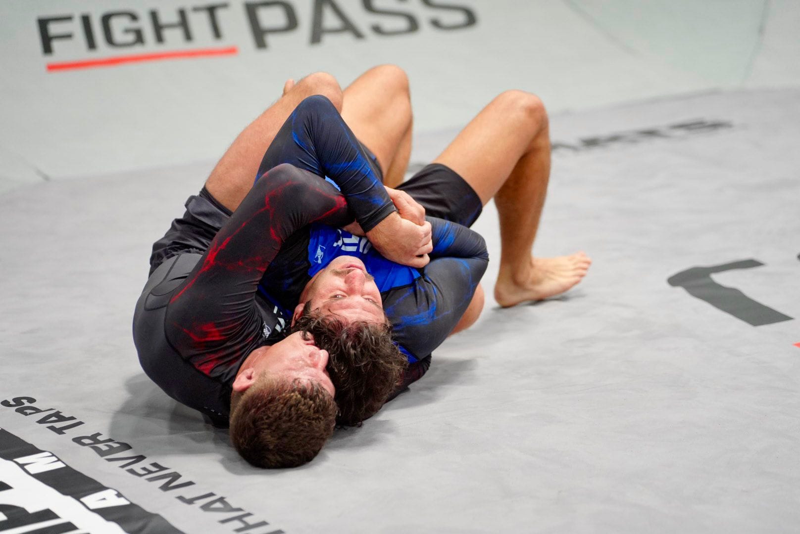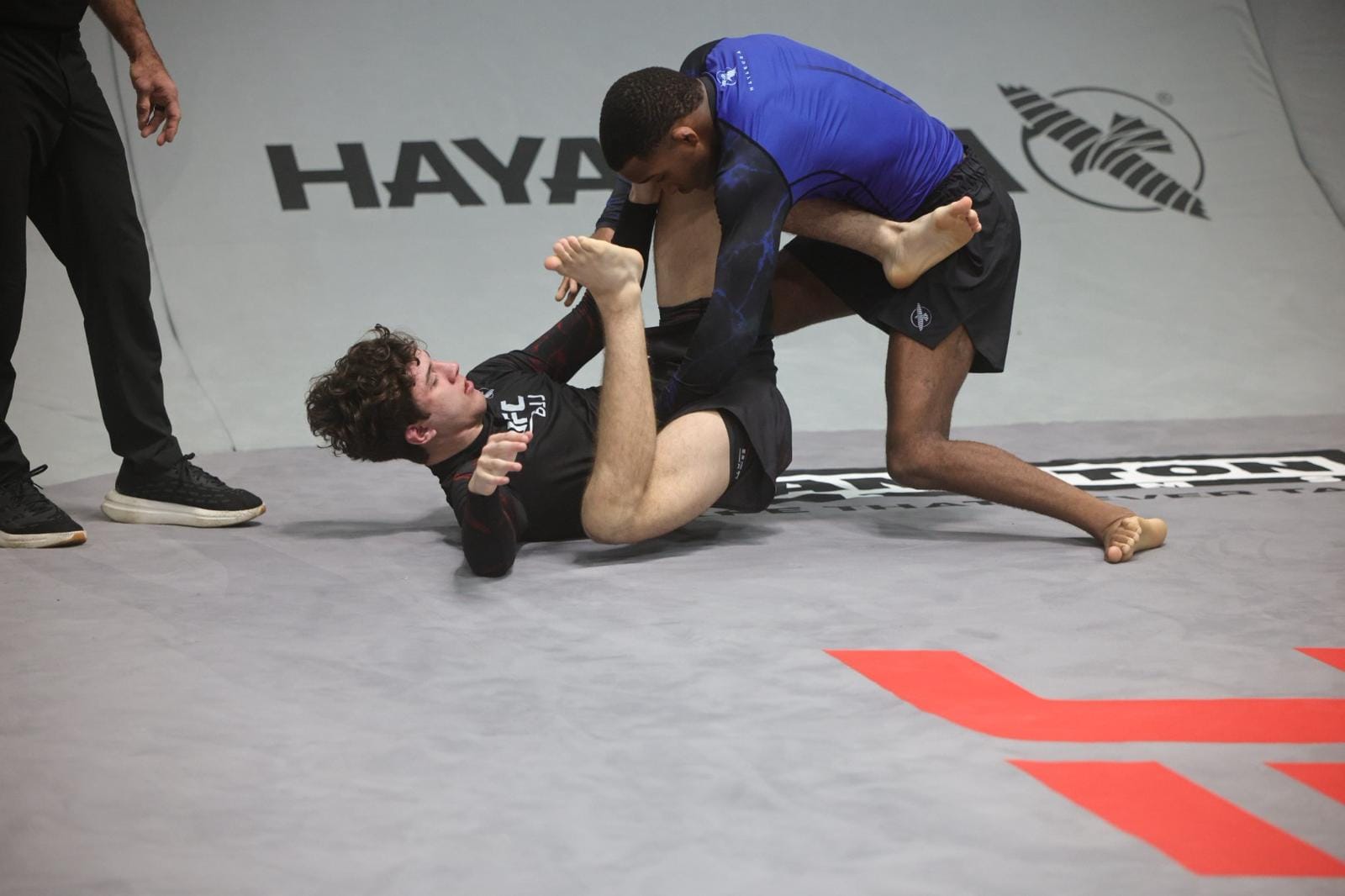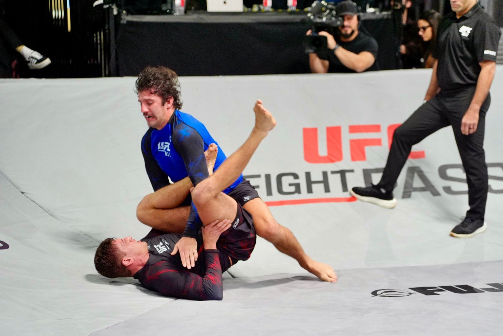 Heel hook attempts. Toe holds. Guillotine transitions. The second round featured a wild roll halfway up the Bowl wall before Brunacio reversed position.